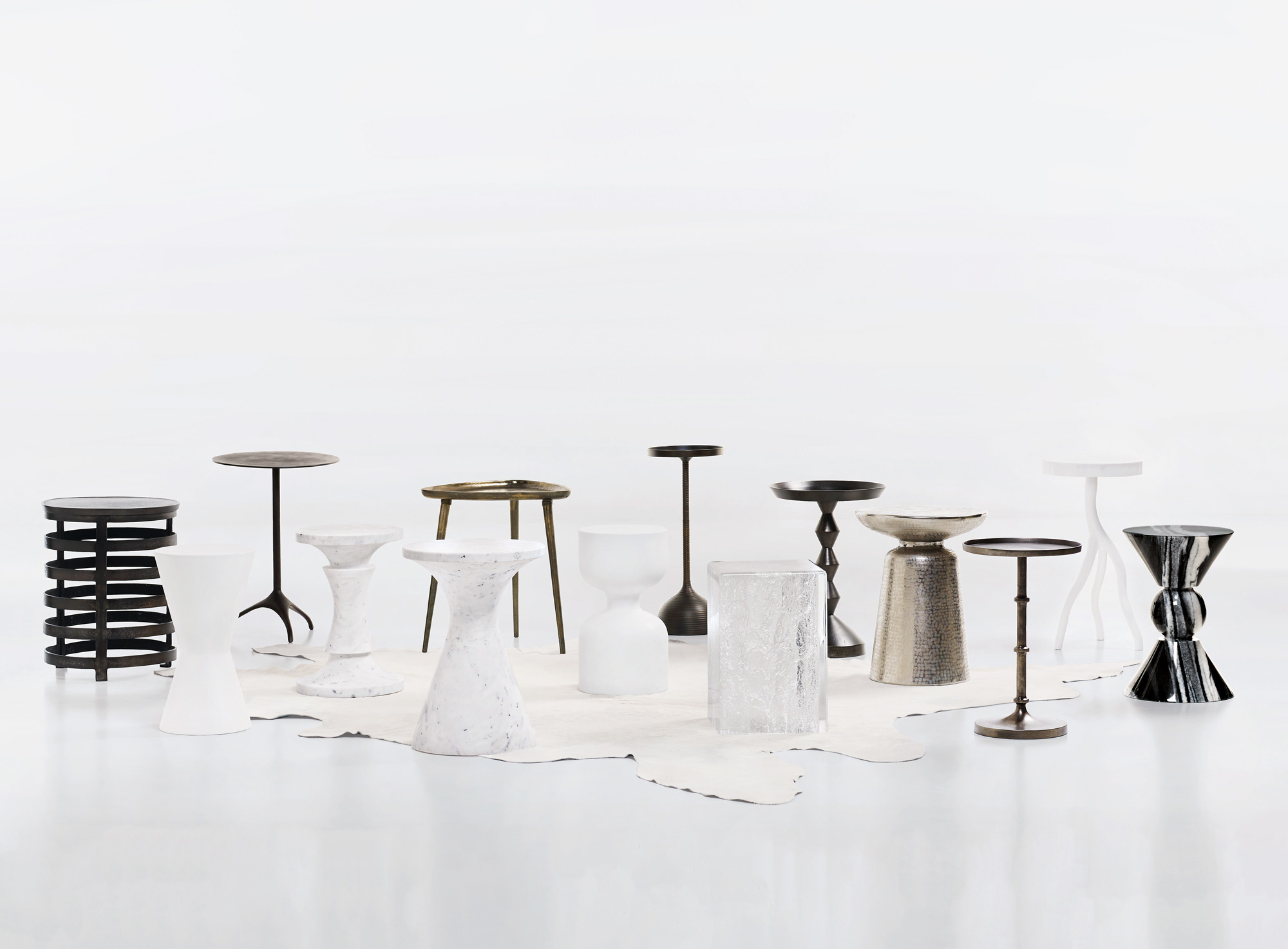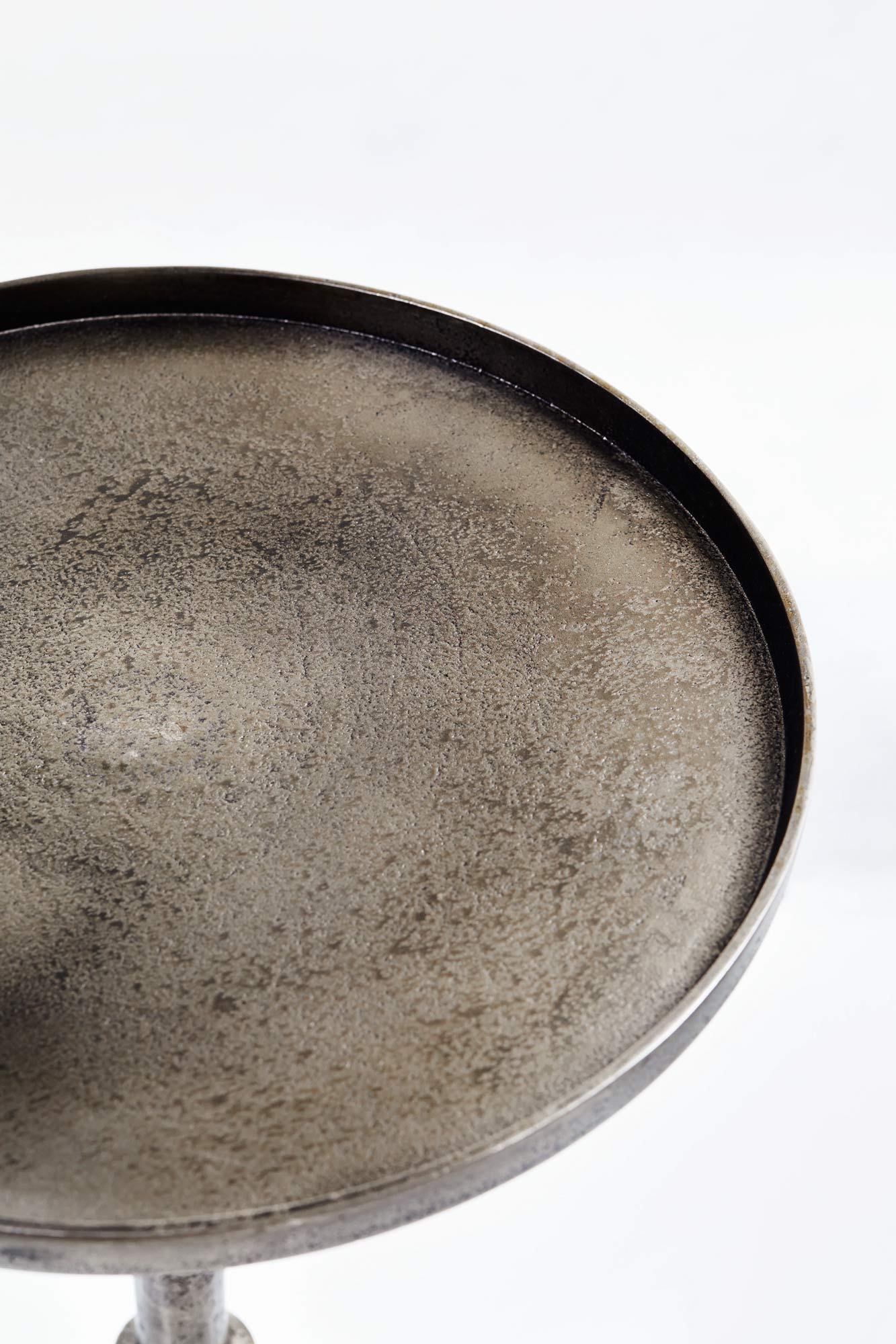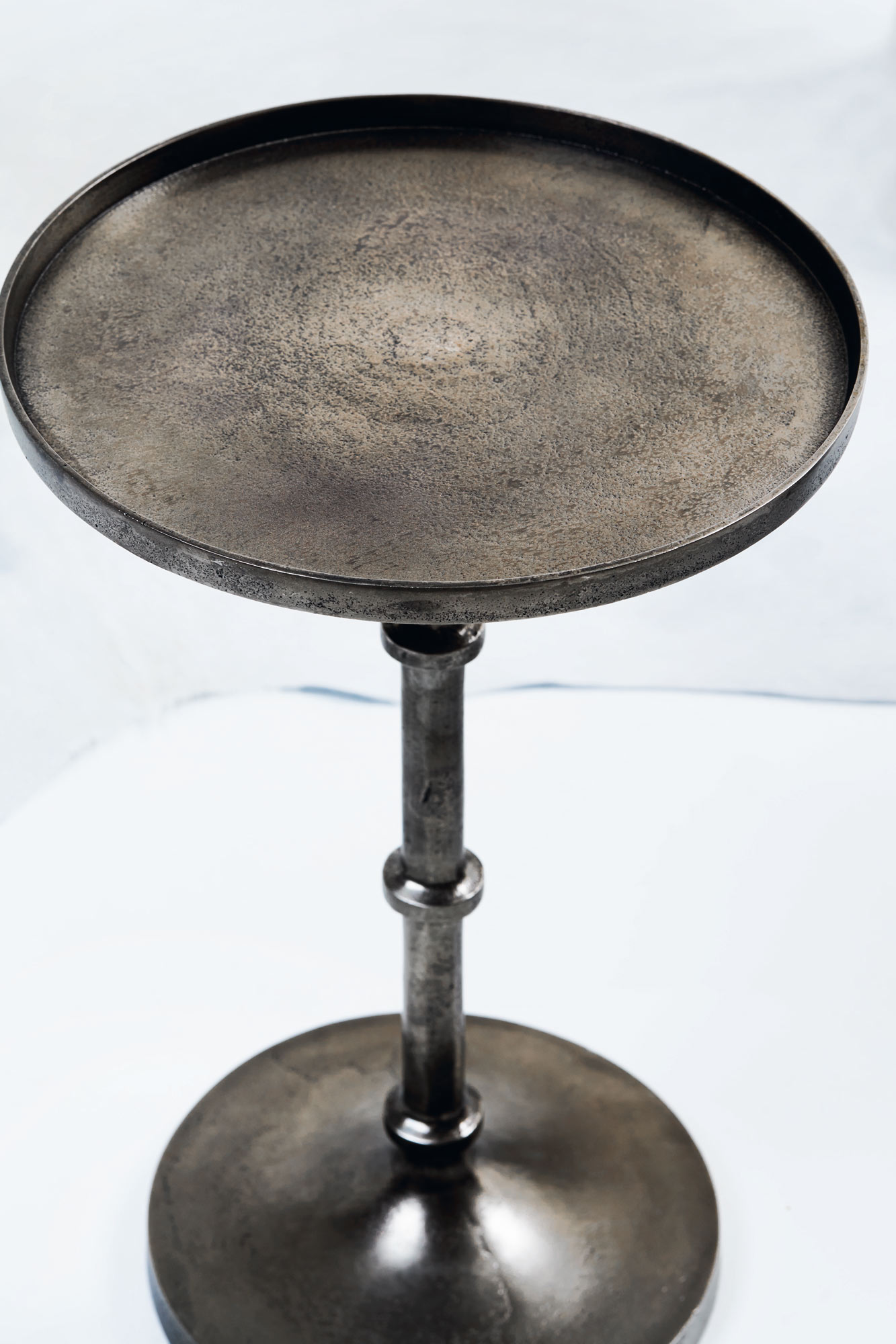 This cast aluminum pedestal table fuses industrial design with modern elements. Its round circular top and base are counterbalanced by a slim sculptural base. Simple and elegant, it has the ability to both blend in and stand out.