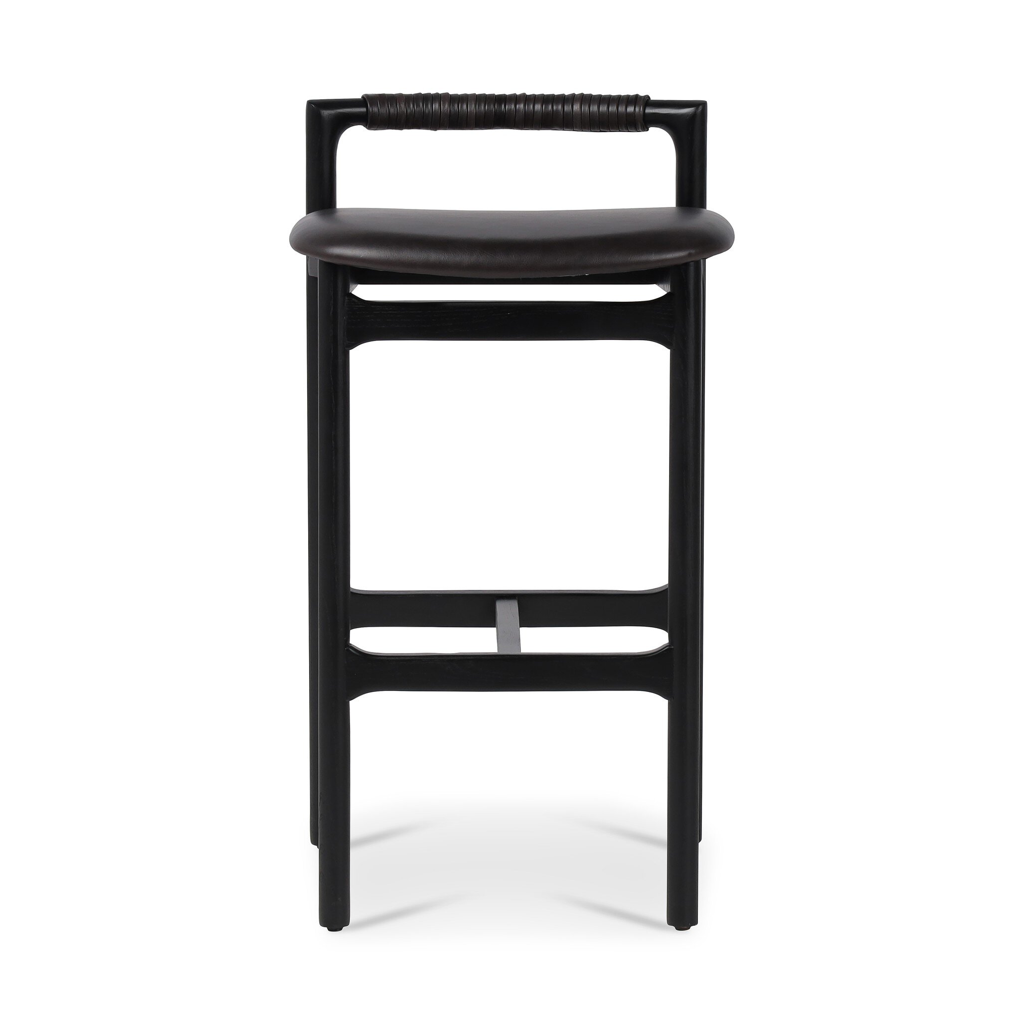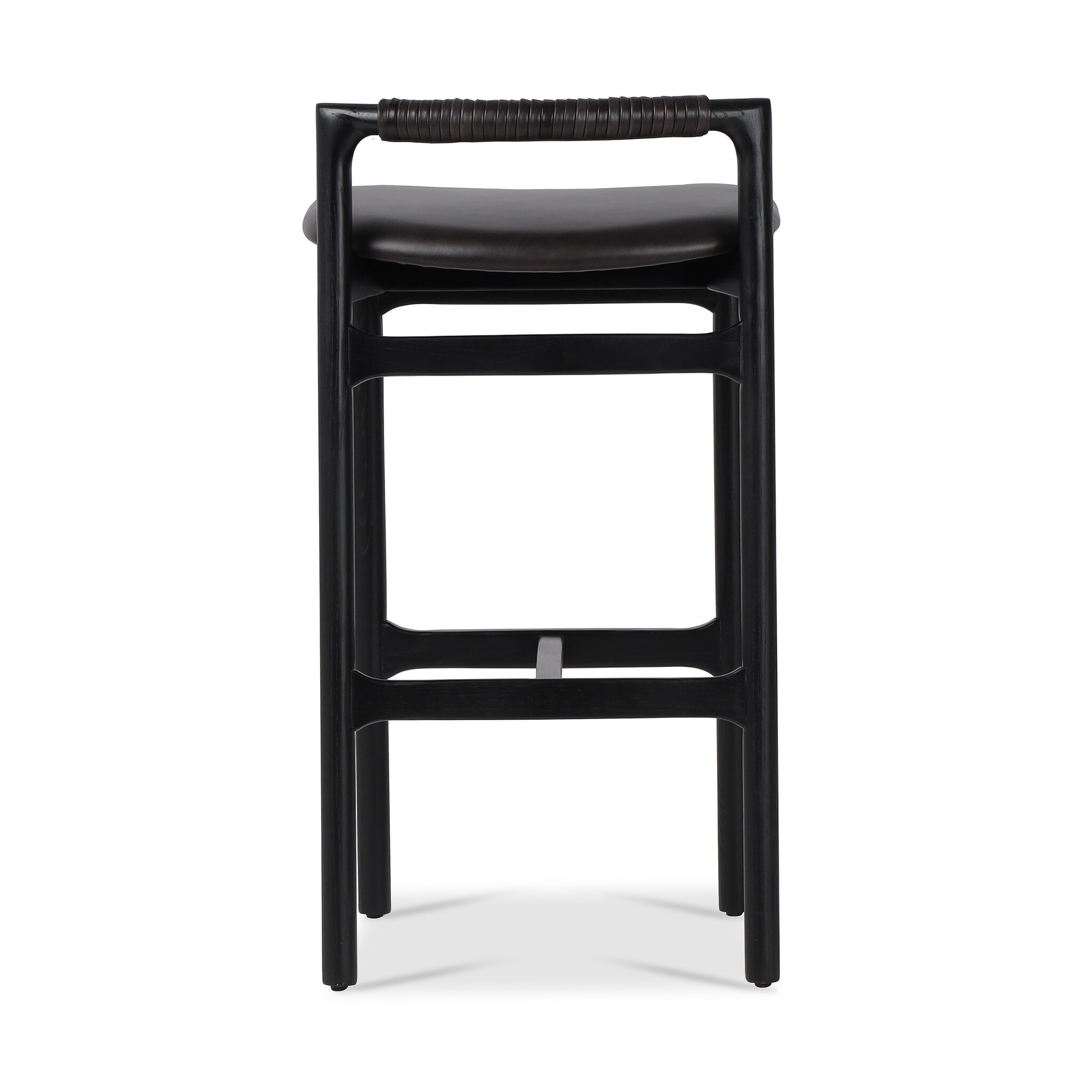 Design-forward with a minimalist frame, this bar-height stool features a top-grain leather seat and a low back with leather wrap detailing. Our top-grain leather has been finished to highlight the natural rich variance in color and feel across each piece.