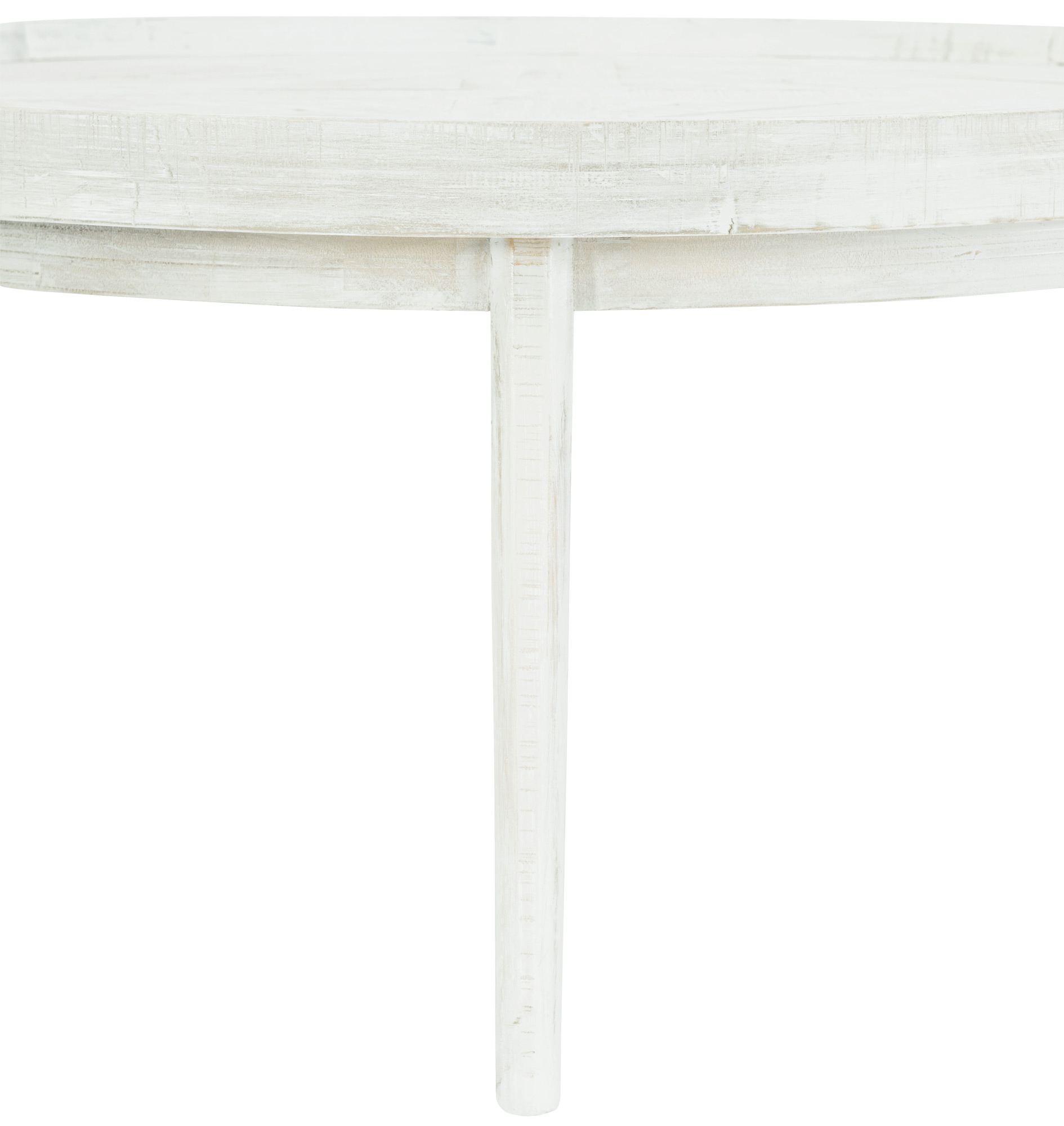Designed to ensure versatility in any space, the Booker cocktail table offers a favorable height and plenty of usable surface space. With a finely crafted overlay of textured planks, the wood-framed gallery top creates an authentic farmhouse effect. Rustic yet refined, the Brushed White finish on distressed pine highlights the grain and imperfections in the wood. Elegant tapered legs take inspiration from mid-century design.