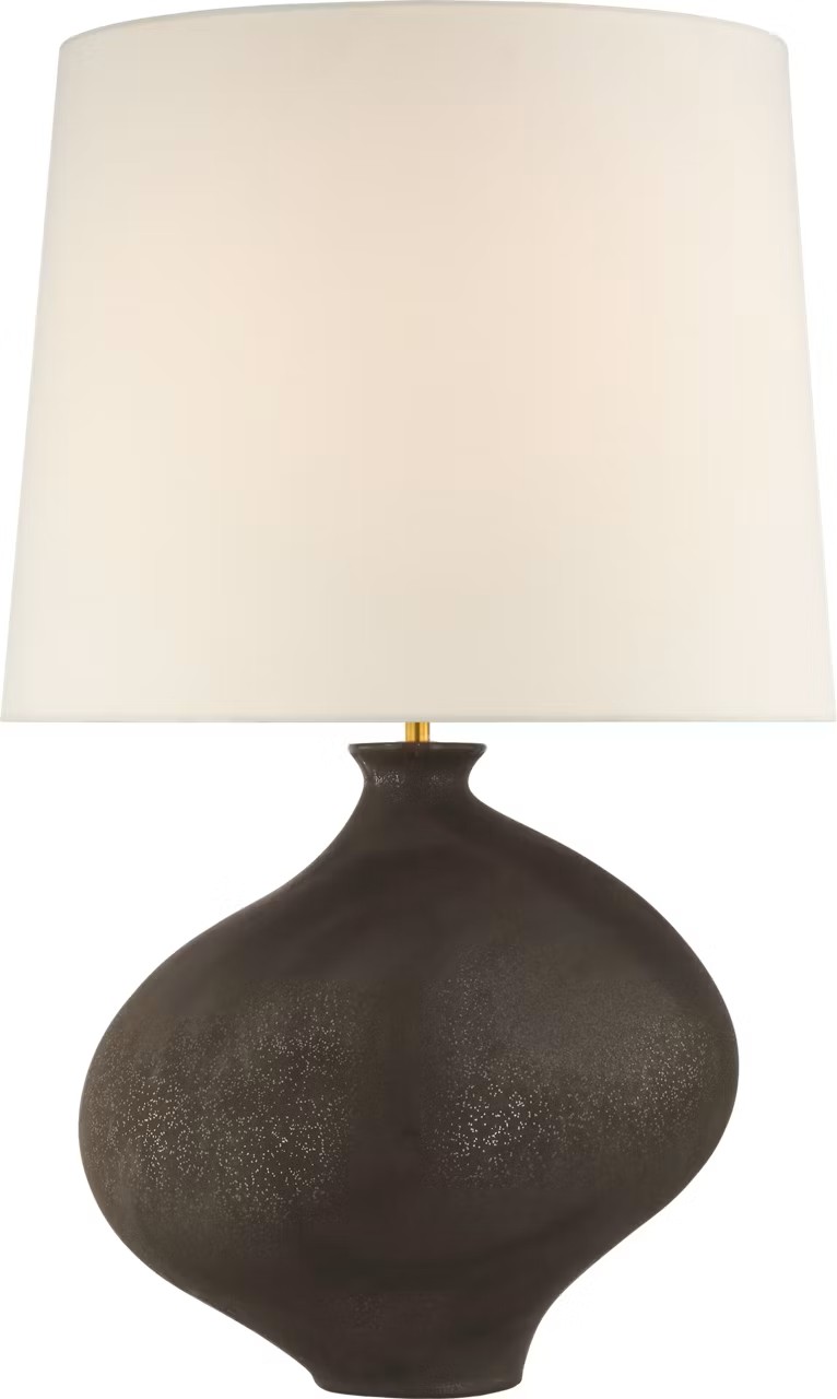The Celia by AERIN finds inspiration in the elegant, wave-worn forms of stones. Imbued with beauty, the asymmetrical base has a subtly textured finish – available in yellow oxide, burnt sienna, Marion white, or stained black metallic – for an added nod to its organic influence. The oversized linen shade will cast a soft light in living rooms and bedrooms. An ideal accent for contemporary and coastal interiors, the asymmetric table lamp can be used alone or as a pair on either side of a bed or sofa.