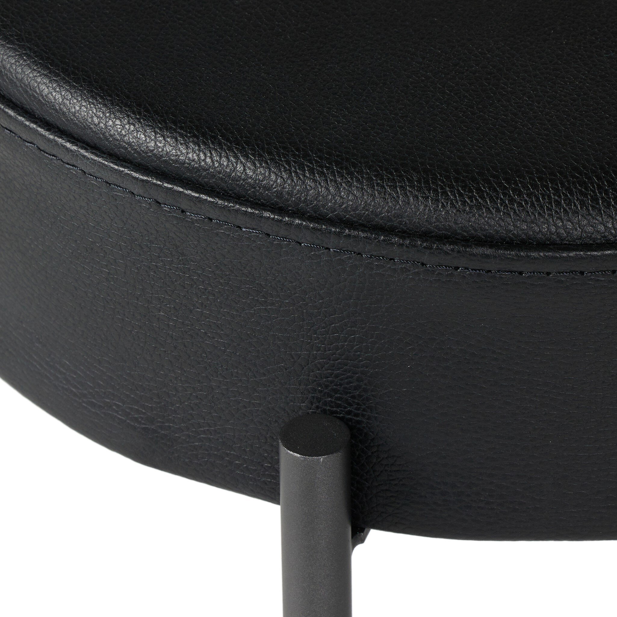 Slim and airy, gunmetal-finished iron legs form a cradle-style frame for speckled hide seating, perfectly sized for the counter. No two hides are the same. A variance in hide color, shape, pattern and hair length is to be expected, reflective of natural materials.