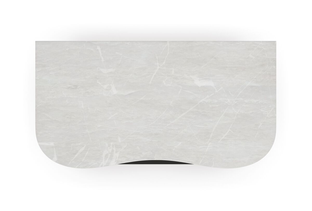 Balanced on a clean plinth base, this large-scale nightstand introduces a sleek and sinuous form with organic simplicity. Chevron-patterned Koto veneers in a Moonstone finish highlight its fluidity, defined by three gently curving, soft-close drawers with horizontal hardware in Deep Bronze. A White Rhino marble top adds a touch of luxe and a durable top surface for nighttime reads and bedside essentials.