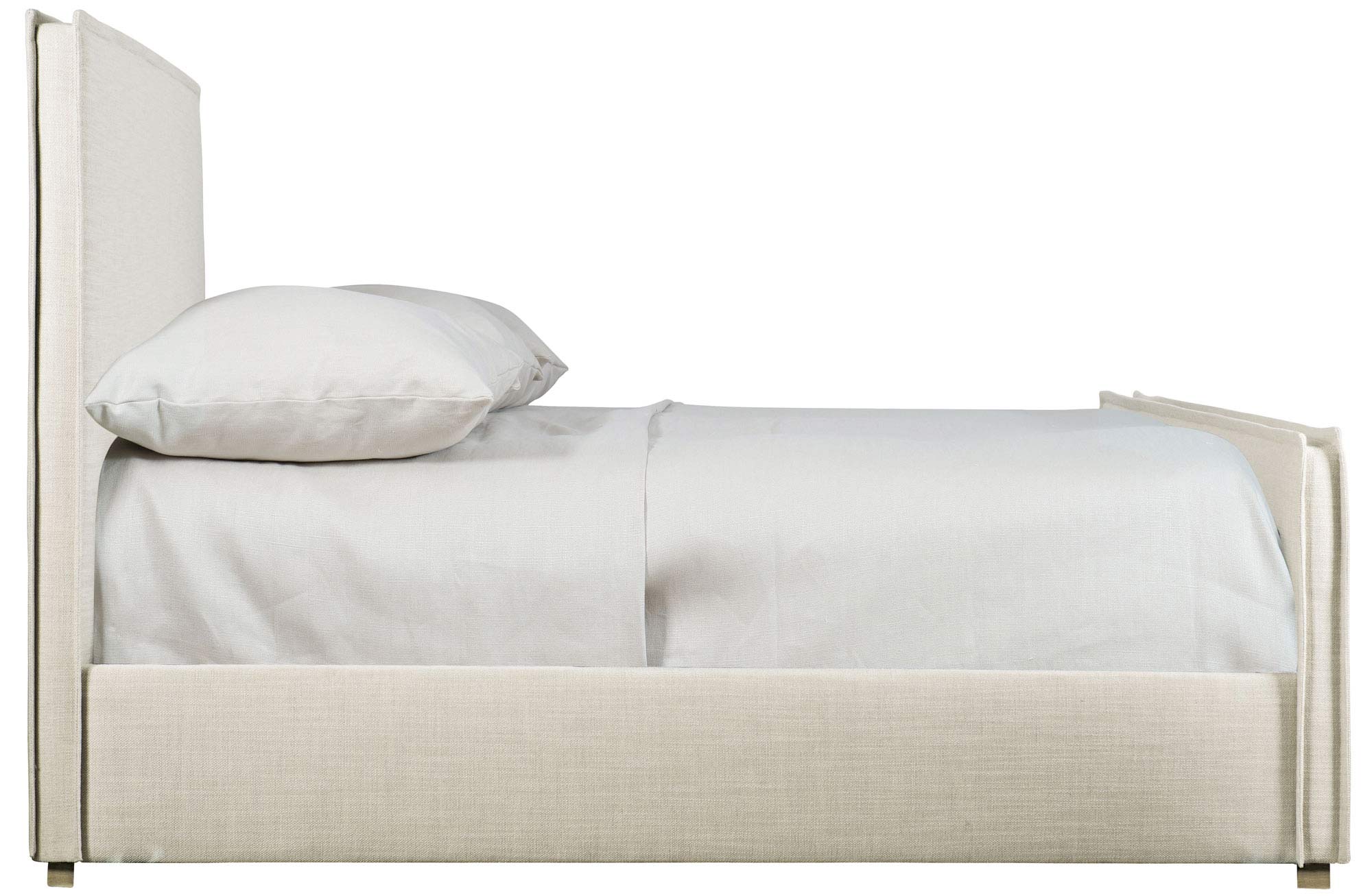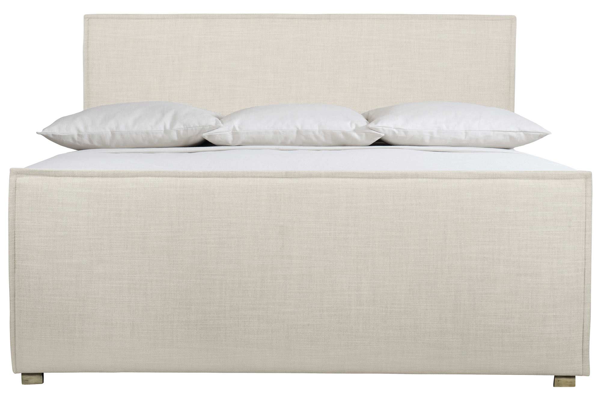 With clean lines and minimal ornamentation, the Sawyer bed offers sophisticated style with a laid-back cool. The fully upholstered bed is covered in muslin and wrapped in textural fabric with a soft neutral shade for a soothing, organic look. Stitched flanged edges and wood feet in a Morel finish add subtle nuances to this stylish but understated piece.