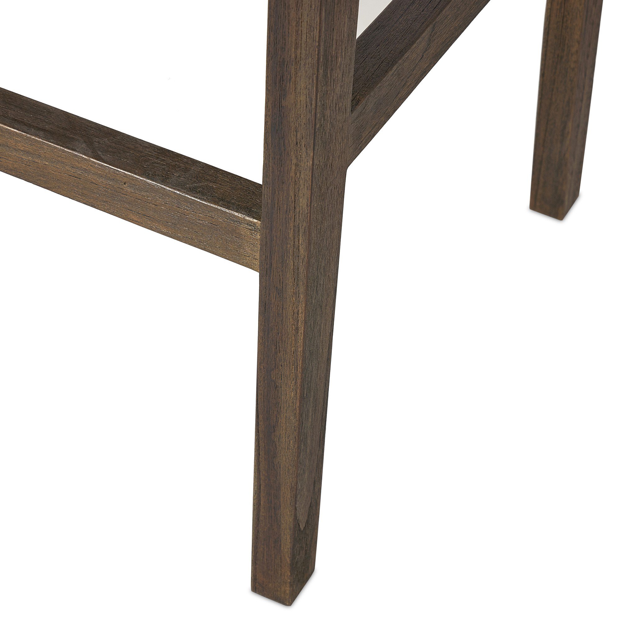 Rich in antique inspiration, this woven bar stool features a handle on the back for added function. The thin woven seat balances with a more substantial stained teak base, bringing an inviting contrast that grounds your space. A design collaboration by Amber Lewis and Four Hands. This item has limited online distribution and may not be sold on websites without prior approval.